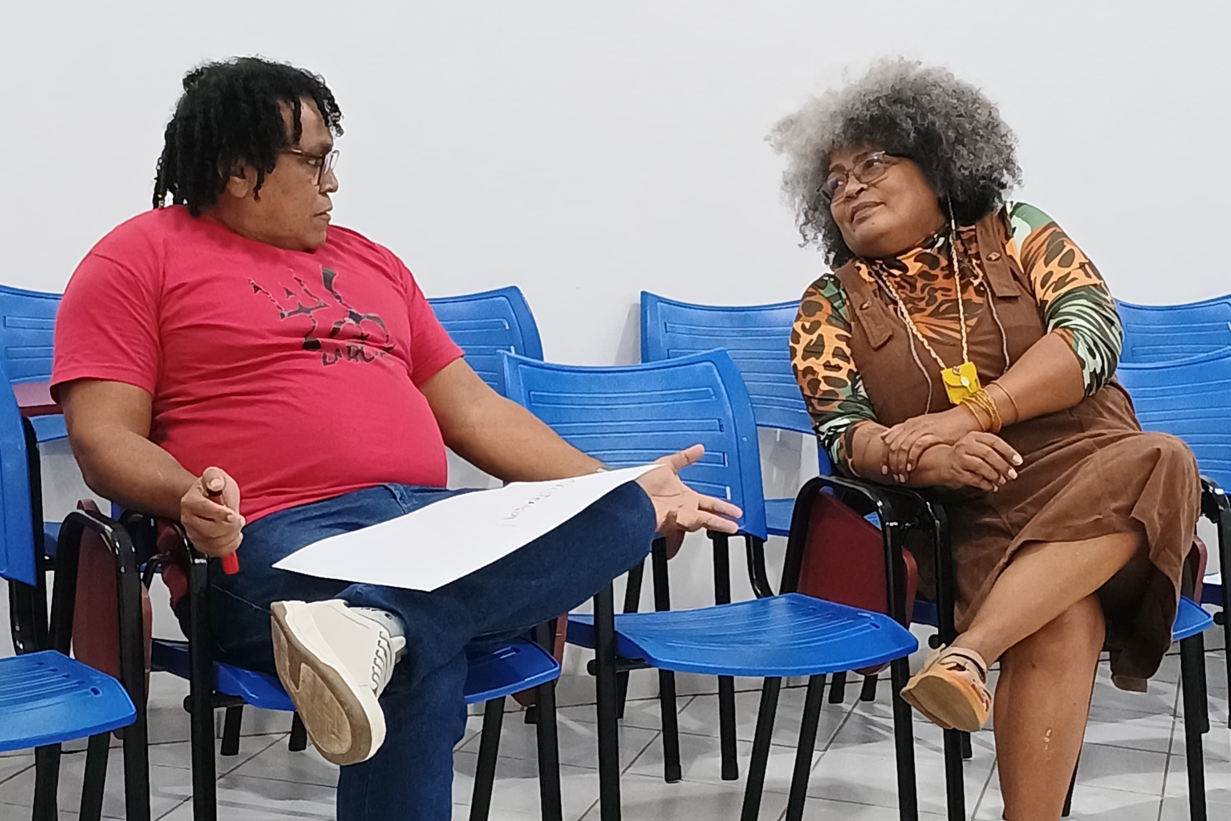 A partir de uma dinâmica coletiva, a docente explicou que os impactos das mudanças climáticas aprofundam as injustiças sociais já existentes, na medida em que afetam de forma desproporcional os grupos mais vulneráveis porque, geralmente, as áreas mais afetadas por enchentes, deslizamentos de terra, calor, falta de água e infraestrutura são habitadas por pessoas pobres, pretas, periféricas, ribeirinhas e indígenas, sobre tudo mulheres.