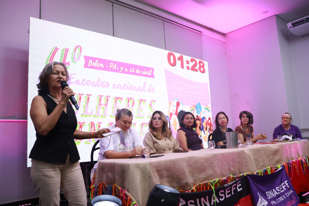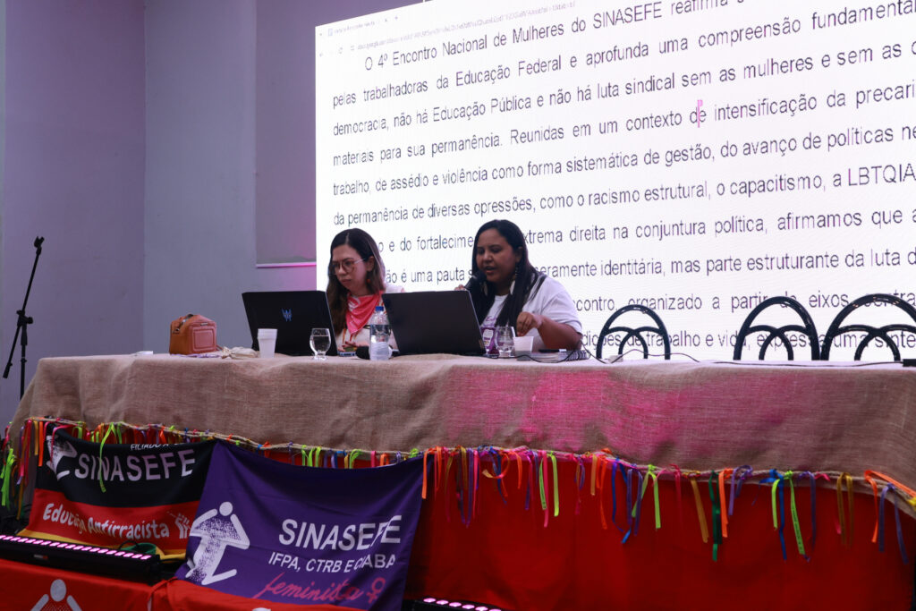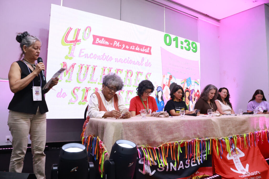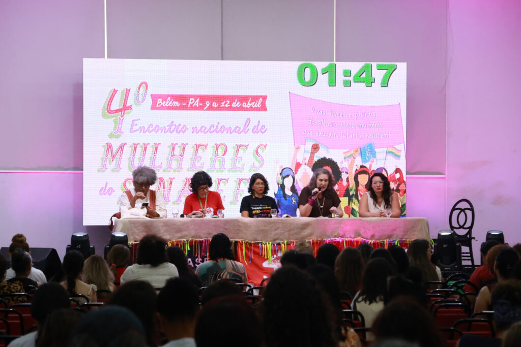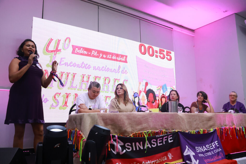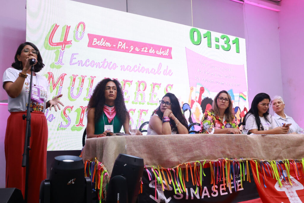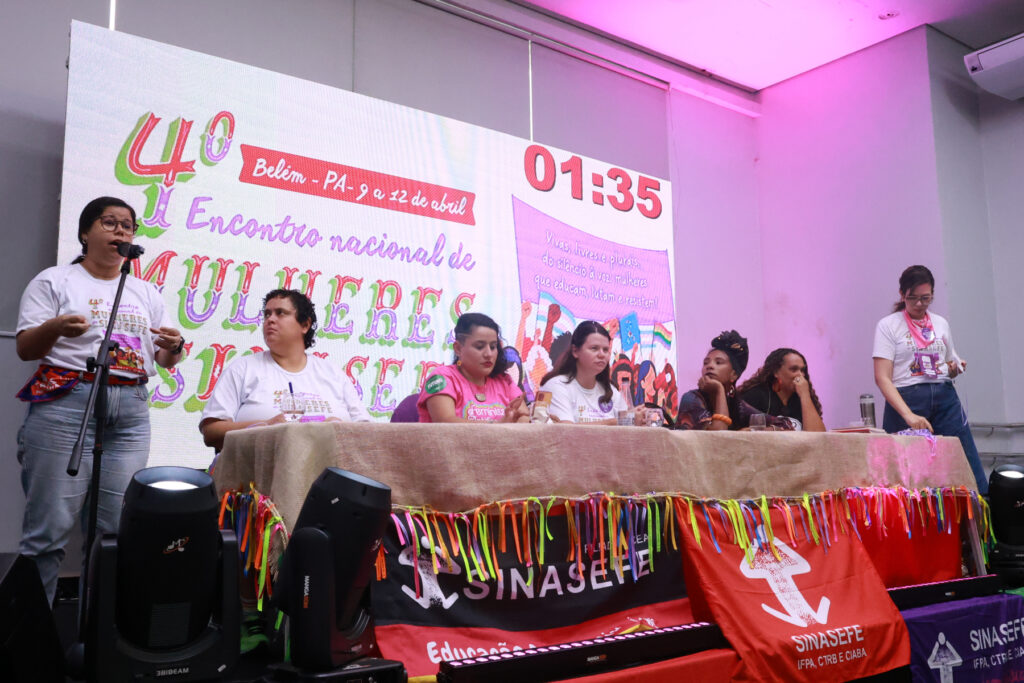 O 4º Encontro Nacional de Mulheres do SINASEFE, realizado entre os dias 9 e 12 de abril, em Belém do Pará, reuniu em torno de 500 mulheres de todas as regiões do país, além de 70 crianças e adolescentes no Sinasefinho, consolidando-se como um espaço de articulação política, formação e construção coletiva. Com o tema “Vivas, livres e plurais, do silêncio à voz: mulheres que educam, lutam e resistem”, as participantes discutiram desigualdades, violência de gênero, saúde mental, condições de trabalho e participação política.