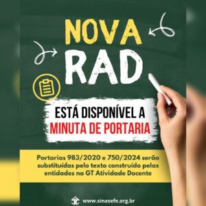 Atenção docentes da base do SINASEFE: após longo debate com o Ministério da Educação (MEC), está (enfim!) finalizada a Minuta de Portaria da nova Regulamentação da Atividade